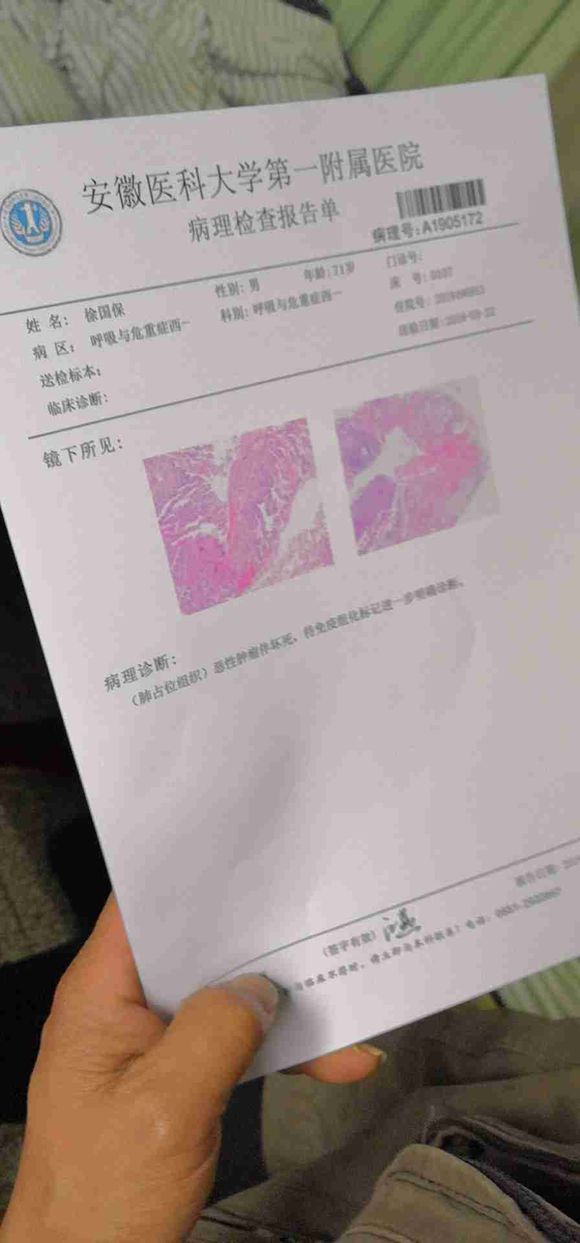 现在在咳血,当地医院应该会使用止血止咳的药,化疗或者靶向药得等到咳血消失了才能使用。继续等待已经等到的病理组织进一步做化验。